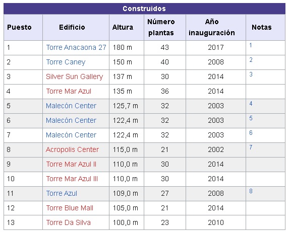 Das höchste Gebäude ist nach wie vor der Turm Anacaona 27, der im Stadtteil Los Cacicazgos an der gleichnamigen Straße gegenüber dem Restaurant Lago Enriquillo steht. Es ist 171 Meter hoch und hat 41 Stockwerke. Es ist das höchste Gebäude in der Karibik und eines der luxuriösesten in Lateinamerika.